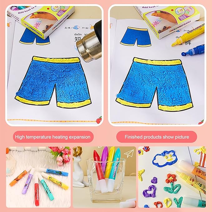 - 【DIY Bubble Popcorn Drawing Pen】These popcorn puffy pens make DIY art a breeze. All pens on this kit contain puffy magic ink that simply draw your creative designs on paper, glass, plastic or any surface, then apply heat using a hairdryer or heater for at least 2 minutes. Watch as your artwork magically transforms into magical imaginative art projects that will amaze everyone.